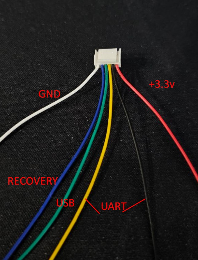 Вставляем в открывшийся нам разъем (мама), наш подготовленный разъем (папа) с замкнутыми (3) зеленым USB + (6) красным 3.3v и (1) белым GND + (2) синим Recovery пинами.