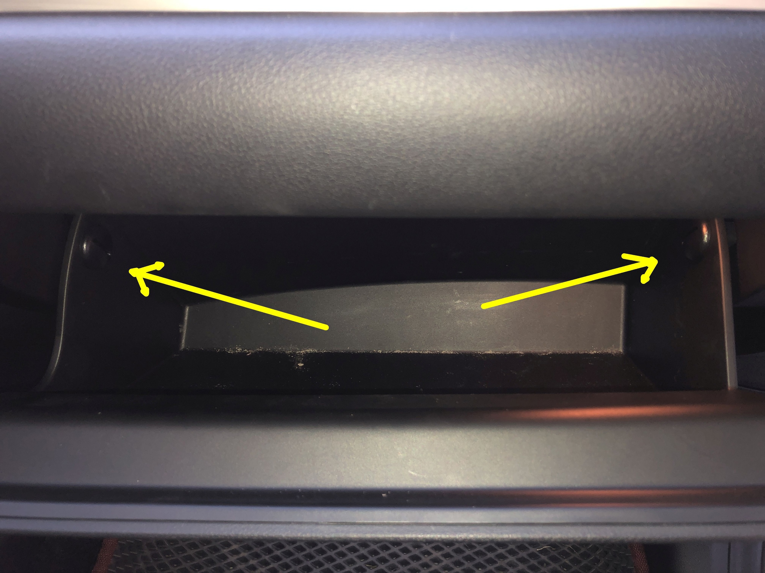 Открываем бардачок, берем десятирублевую монетку, и немного отклонив бардачок в сторону закрытия снимаем два барашка крепления.